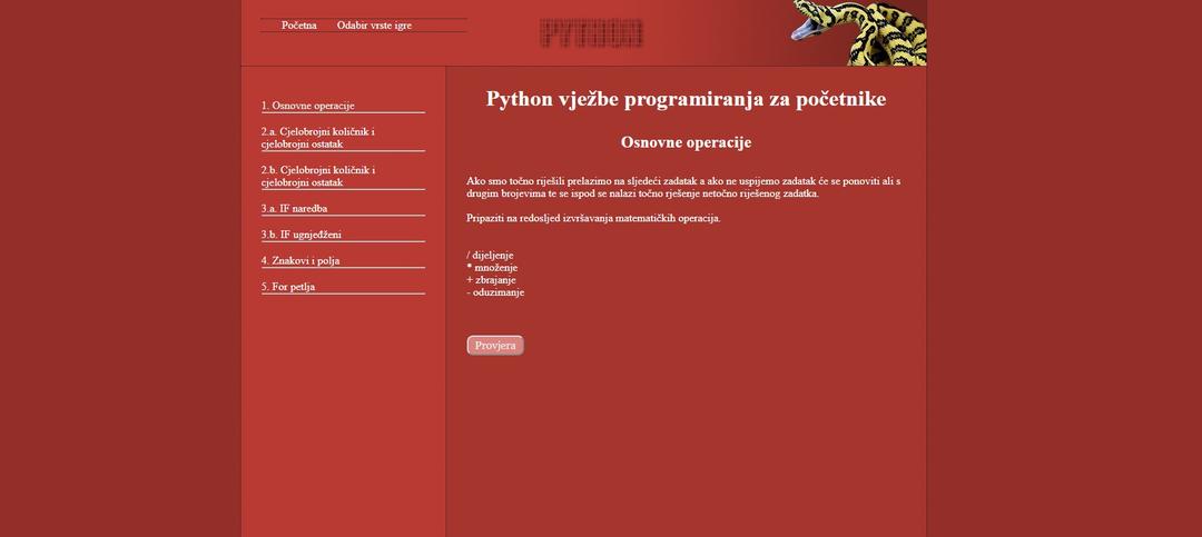 Učenik rješava osnovne algoritme. U slučaju da je učenik pogriješio dobiva isti zadatak samo s drugim brojevima. U slučaju točnog odgovora učenik prelazi na sljedeći zadatak.