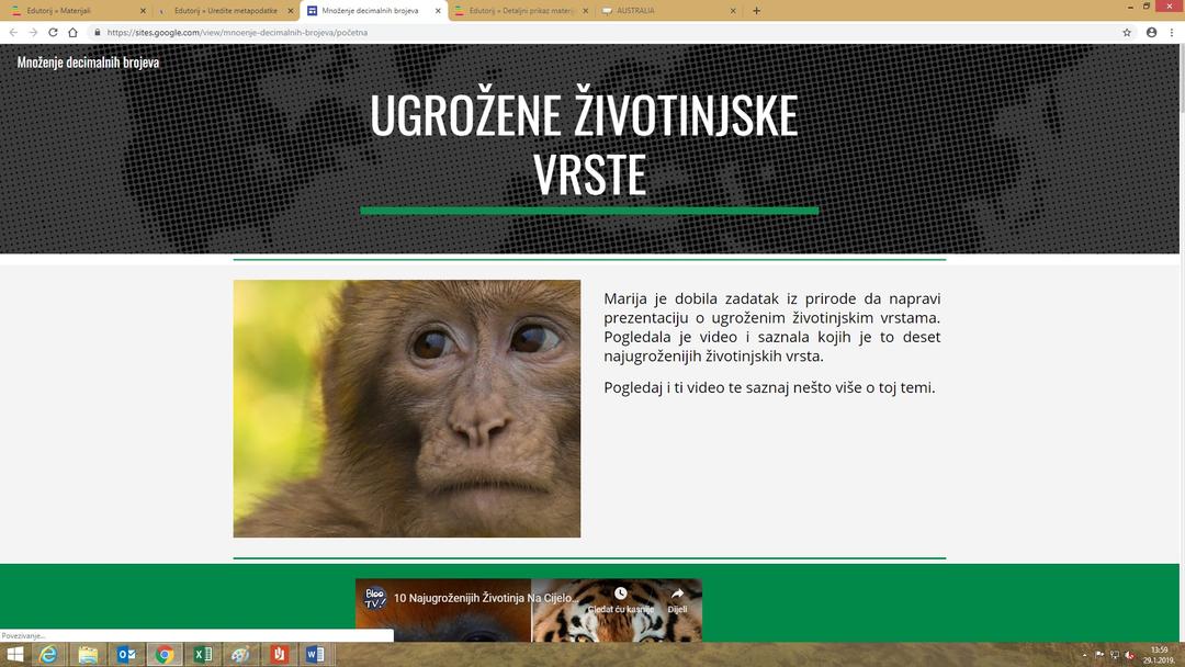 Učenici gledaju video o ugroženim životinjskim vrstama (5 minuta) vode razgovor o pogledanom videu problemski zadatak: Kako pomoći Mariji u rješavanju problema jer ne razumiju podatke koje je pronašla o životinjama.