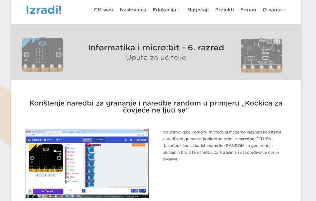Učenje kako pomoću micro:bita možemo vježbati korištenje naredbi za grananje konkretno primjer naredbe IF-THEN. Također učenici koriste naredbu RANDOM za generiranje slučajnih broja te naredbu za zbrajanje i uspoređivanje cijelih brojeva.