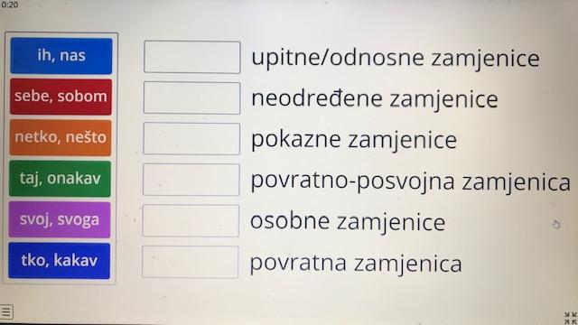 Ova interaktivna aktivnost služi za uvježbavanje i primjenu zanja o zamjenicama u 7. razredu nakon obrade svih vrsta zamjenica.
