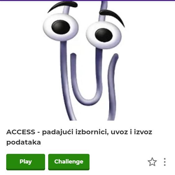 Kahoot kvizi o accessu - uvoz i izvoz podataka padajući izbornici