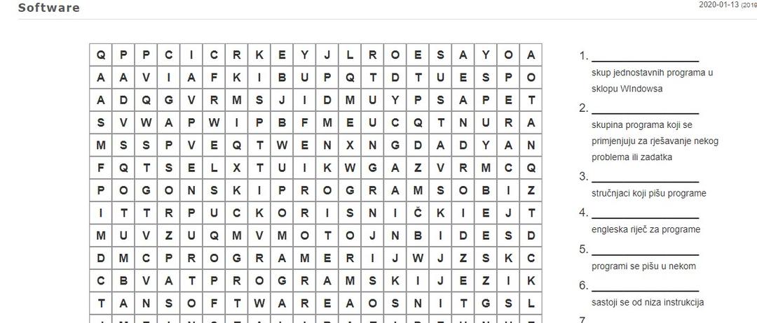 Pronađite u osmosmjerci zadane pojmove pomoću njihovog opisa