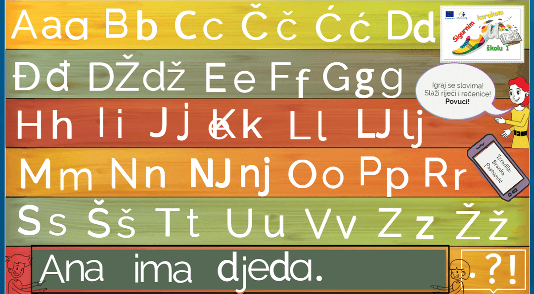 rečenica, Abeceda, slovo, riječ, interaktivna ploča