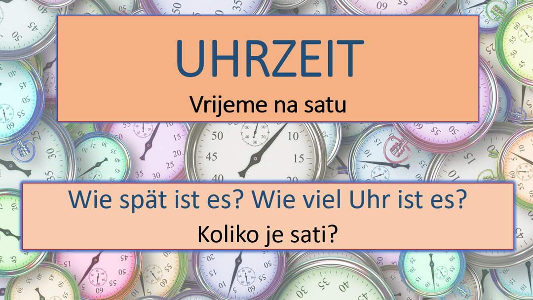 DODATAK prezentaciji je: NJEMAČKI JEZIK 4 Aufgabe UHRZEITEN - radni listić sa zadatkom za uvježbavanje pisanja rečenica s vremenom na satu (vidi niže mrežne adrese materijala).