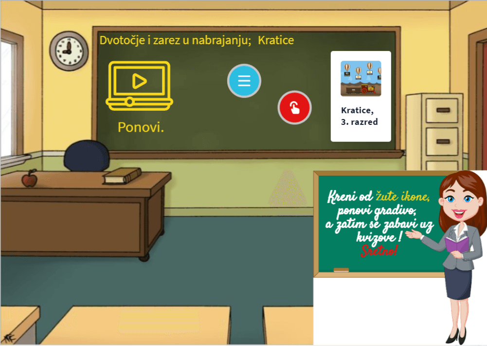 Svaka nastavna tema najprije se prezentira kroz kratko ponavljanje. Nakon toga slijede zanimljivi