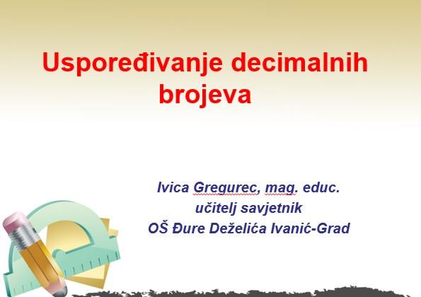 Ovom video lekcijom učenici će lakše zadovoljiti ishode vezane za uspoređivanje decimalnih brojeva.