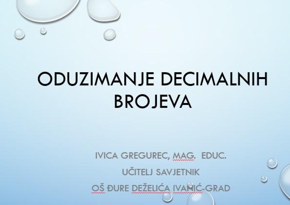 Ovom video lekcijom učenici mogu bolje ostvariti ishode vezane za osuzimanje decimalnih brojeva.