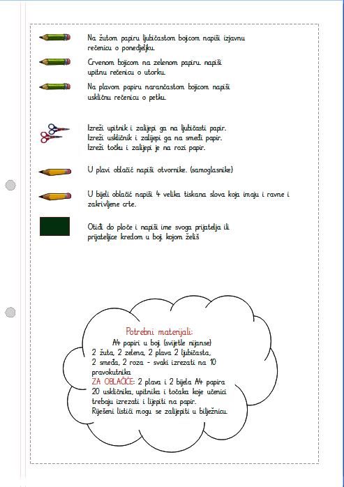 Listić za ponavljanje sadržaja iz hrvatskog jezika u prvom razredu