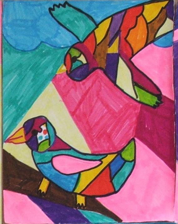 rad u skupinama, flomasteri, kontrast toplo, Ptice, hladno