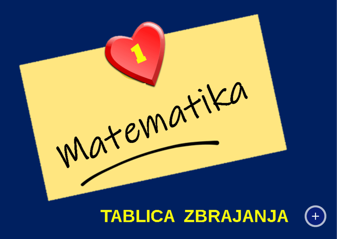 Tablica zbrajanja za 1. razred osnovne škole. DOS za vježbanje, ponavljanje i samostalno učenje zbrajanja do 20. Tablica je funkcionalna na svim uređajima (interaktivna ploča, računalo, tablet, pametni telefon).
