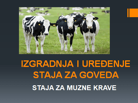 Računalna prezentacija o tehničkim uvjetima projektiranja staja posebice staja za muzne krave.