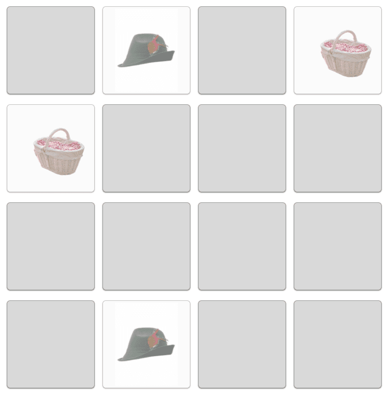 Cilj igrice je pamtiti na kojim se karticama nalaze fotografije pojma iz bajke i spojiti iste kartice.