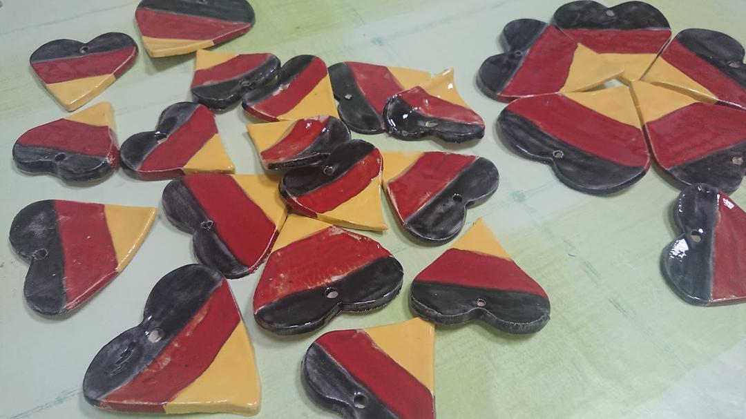 Keramička sekcija te Zadruge izradili su prepoznatljive perece u glaziranoj keramici kao i srca u bojama njemačke zastave.