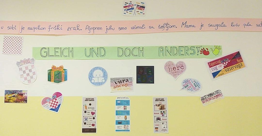 U sklopu obilježavanja ovogodišnjeg Mežđunarodnog dana materinjeg jezika učenici su istraživali koje riječi se kod njih kod kuće svakodnevno koriste a imaju korijen u stranim riječima. U školi su izabrali rečenice koje su sadržavale najveći broj germanizama te su ih ispisali jednu za drugom na papirnatu traku. Zatim su zapisali odabrane germanizme u njihovom izvornom obliku te ponudili hrvatsku riječ kao alternativu npr: plac (der Platz tržnica); farba (die Farbe boja)