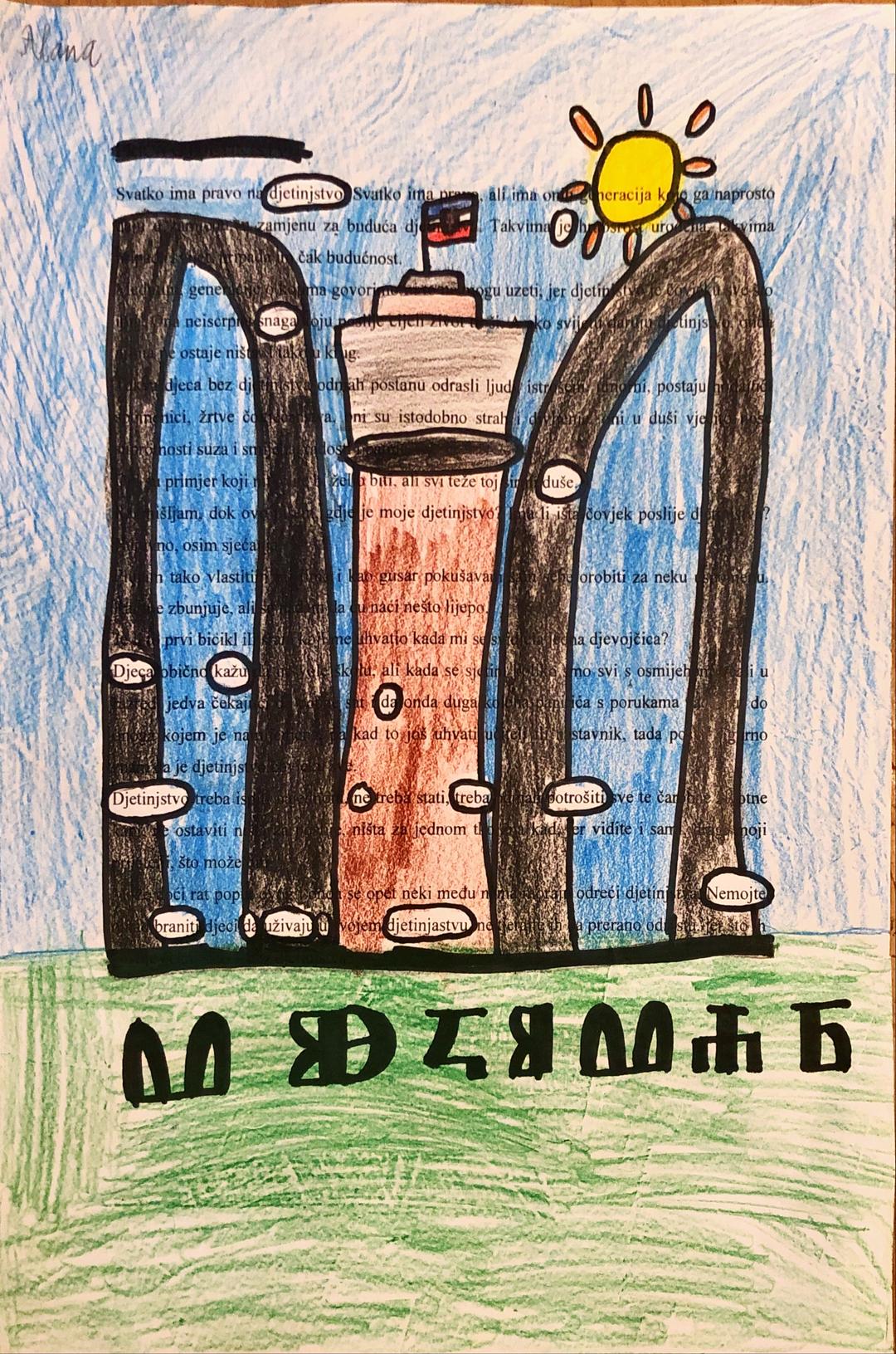 Na stranicama proznog teksta Siniše Glavaševića (Priča o igri i Priča o djetinjstvu) tražili su riječi za pjesmu. Zadatak je bio pronaći riječi koje će činiti novu misaonu cjelinu. Odabrane riječi iz teksta trebalo je izdvojiti i zaokružiti, a ostatak teksta zatamniti, odn. oslikati tehnikom i bojom po vlastitom izboru.