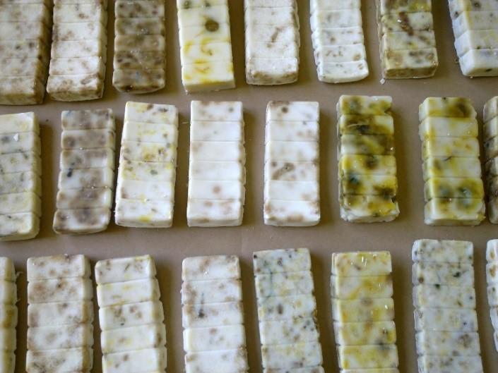Metode rada: 100 g palminog ulja pomiješati sa 46,6 g natrijeve lužine, izmiksati mikserom. U smjesu dodati suhe cvjetove lavande. Uliti u kalupe.