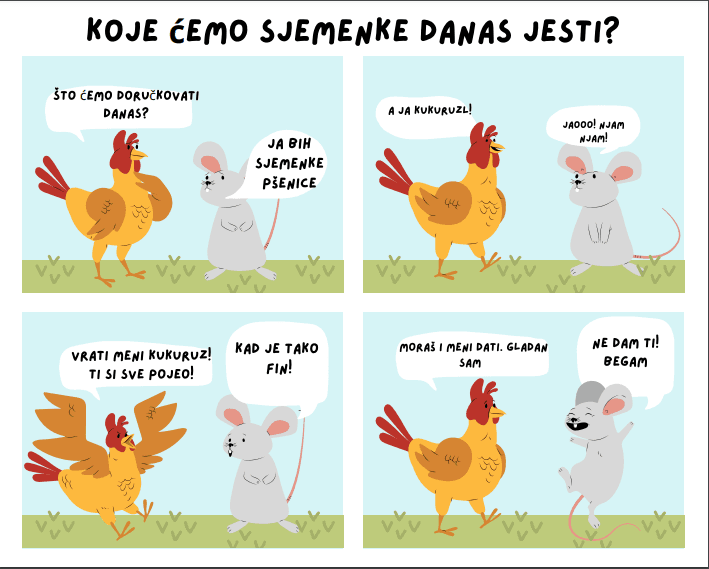 Zadatak: Izradite strip koristeći biljne i životinjske organizme. Strip možete izraditi u digitalnom alatu Canva ili ga crtati rukom.