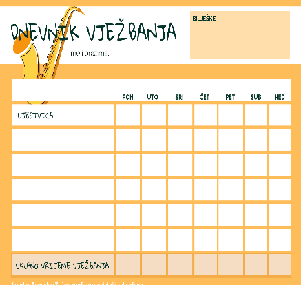 dnevnik, tablica, saksofon, vježbanje