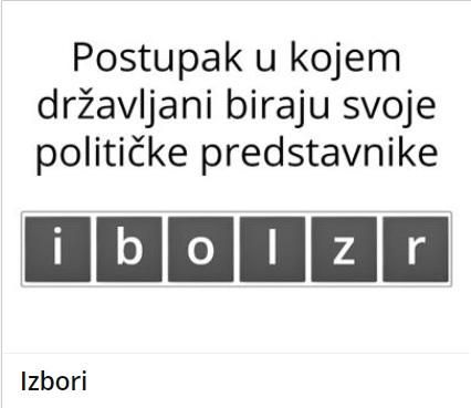 Povucite slova na njihovo odgovarajuće mjesto kako biste ispravno složili riječ ili izraz.