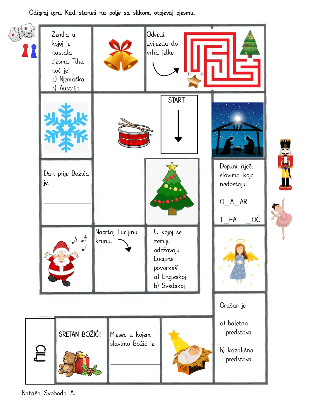 nastavni listić pogodan za uvježbavanje sadržaja o božićnim običajima