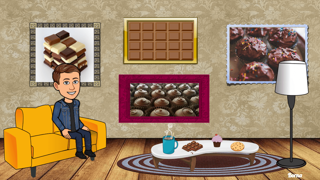 Du wirst einen virtuellen Raum mit „Schokolade“ für deinen Avatar/Bitmoji erstellen. Die Anweisungen zum Erstellen des Raums findest du im Video auf Englisch. Wir werden alle zusammen in einer GoogleSlides-Präsentation arbeiten also wähle deinen Slide und erstelle deinen virtuellen Raum mit „Schokolade“ einschließlich: