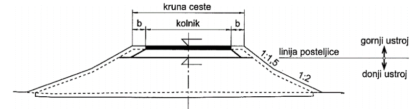 Gornjeg ustroj ceste, kolnik, rubni trak, rigol, bankina, berma