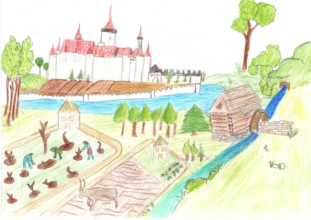 crta prikaz ili izrađuje maketu srednjovjekovnog feudalnog vlastelinstva