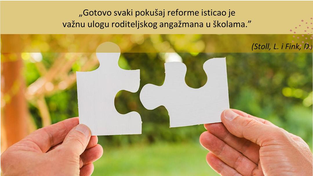 Obilježja suvremenog svijeta u kojemu vladaju krize, epidemije i brzi tehnološki napredak u prvi plan stavljaju nužnost suradnje roditelja i škole jer jedino zajedničkim, partnerskim djelovanjem možemo raditi na izgrađivanju zdravih ličnosti.