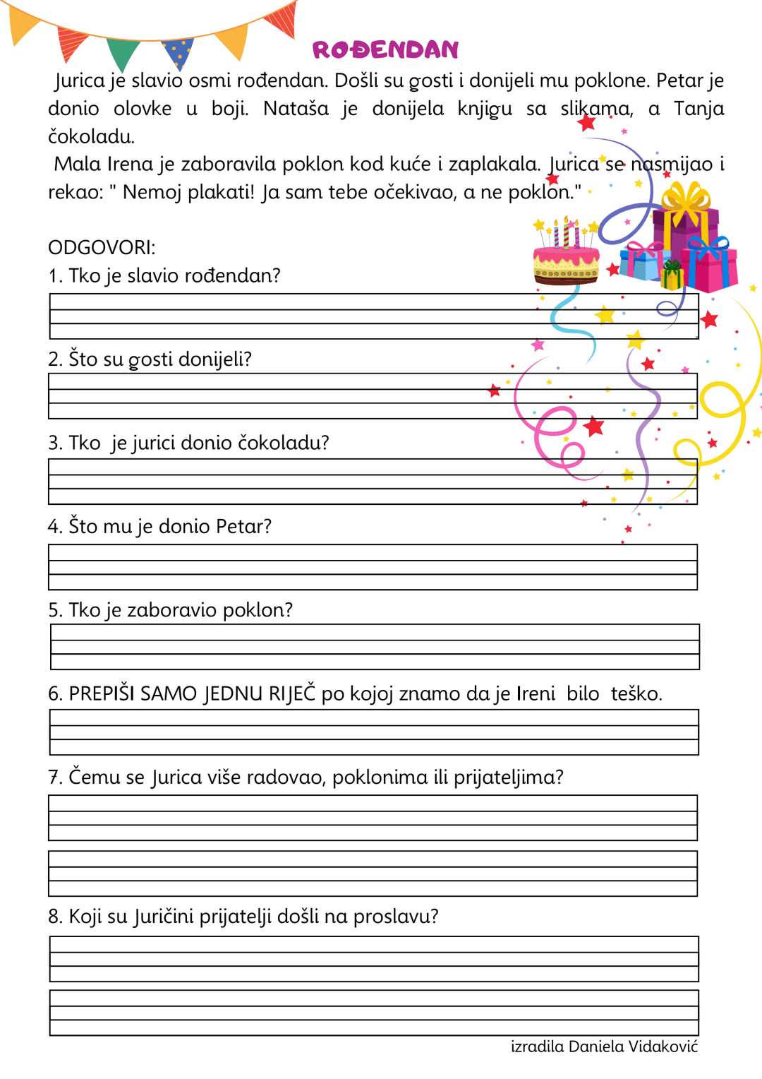 ROĐENDAN, ČITANJE: ČITANJE S RAZUMIJEVANJEM: ODGOVARANJE NA PITANJA