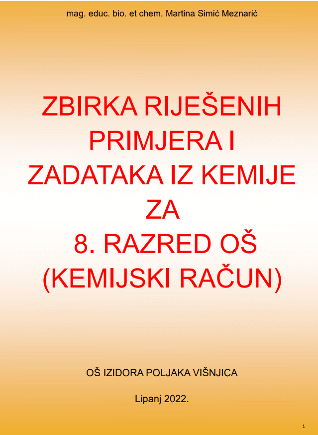 - Obrazovni sadržaji-> Osnovne škole-> 8. razred-> Kemija-> D. Prirodoznanstveni pristup-> KEM OŠ D.8.2. Primjenjuje matematička znanja i vještine