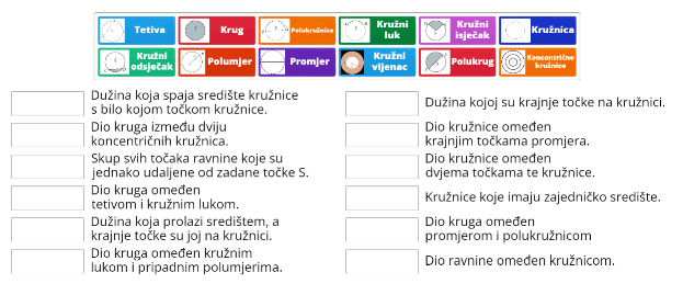 Klikom na postavljeni link (https://wordwall.net/resource/2043312) korisnici mogu pokrenuti digitalnu obrazovnu igricu pomoću koje mogu ponoviti i naučiti osnovne pojmove o krugu i kružnici.