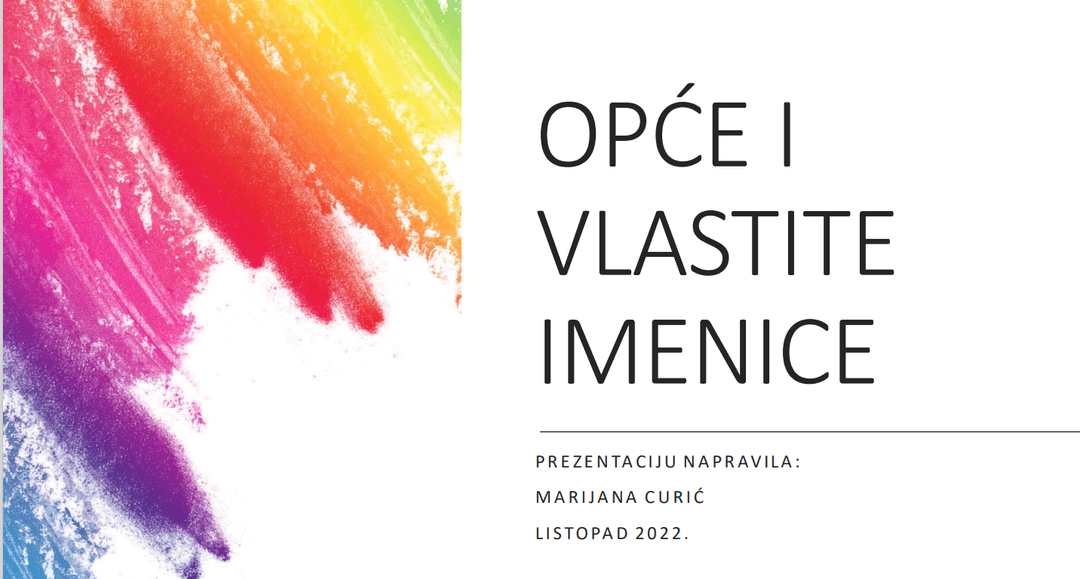 Materijal sadrži pripremu za obradu Općih i vlastitih imenica prema udžbeničkoj literaturi Power Point prezentaciju koja prati obradu i digitalni sadržaj izrađen u Wordwallu pomoću kojeg učenici mogu razvrstati imenice- provjeriti točnost prema zadatku iz udžbenika.