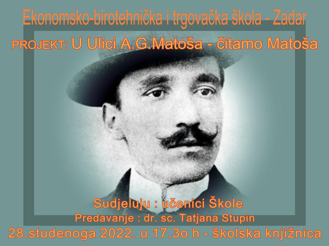 Plakat koji je najavio moj projekt: "U Ulici A.G.Matoša - čitamo Matoša", a u okviru zajedničkoga školskog projekta posvećen Matoševu jubileju.