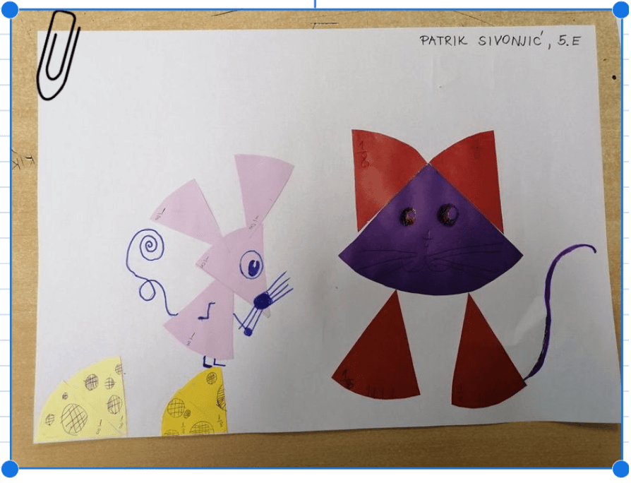 Učenici izrađuju crteže životinja, biljaka i ostalih motiva koristeći samo dijelove kruga koji je podijeljen na dijelove u odgovarajućim razlomcima. Na svaki dio kruga brojčano zapisuju razlomak koji predstavlja. Izrađuje se digitalna knjiga radova (u aplikaciji bookcreator).