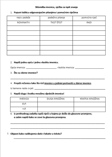 PPT za izvedbu dva nastavna sata s pripremama i nastavnim listićima. Područje Hrvatski jezik i komunikacija. Cjelina Morfologija. Nastavne jedinice: Imenice - podjela imenica; Gramatičke kategorije imenica