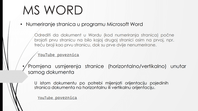 Microsoft Word, Numeriranje i Usmjerenje stranica