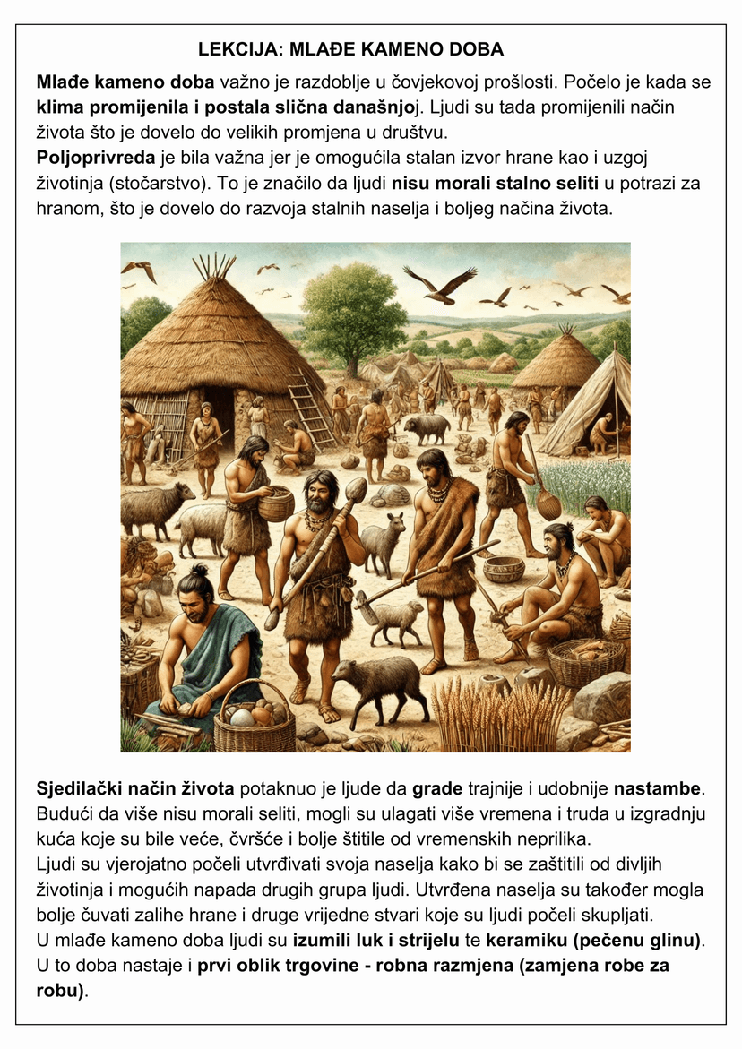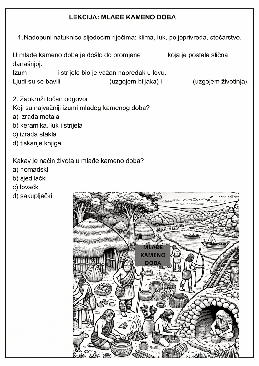 Ogledni primjeri prilagodbe metoda, sadržaja i aktivnosti za učenike s teškoćama: nastavni listići (Što je povijest, Prapovijest - 5. razred)