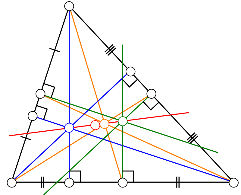 opisana kružnica, težište, ortocentar, upisana kružnica