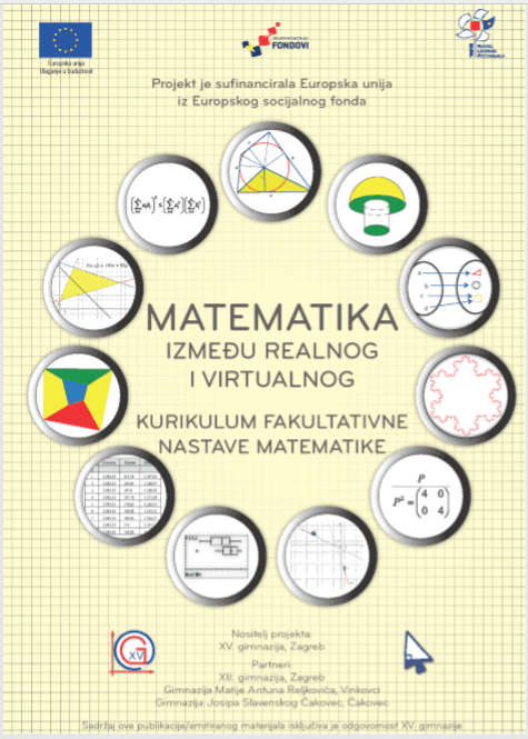 Kurikulum fakultativne nastave matematike vježbenice i priručnik za nastavnike. U fakultativnoj nastavi matematike naglasak je na istraživačkoj problemskoj i projektnoj nastavi uz primjenu elemenata igrifikacije i informatičke tehnologije. Nastavni materijali za učenike objavljeni su u četiri vježbenice iz područja Geometrija 1 i 2 Funkcije 1 i 2 Matrice i vektori Modeliranje Statistika i vjerojatnost Financijska matematika Teorija grafova i Modeliranje. Ova publikacija rezultat je projekta Matematika između realnog i virtualnog koji su provele nositelj projekta XV. gimnazija iz Zagreba s partnerima XII. gimnazija Zagreb Gimnazija Matije Antuna Reljkovića Vinkovci i Gimnazija Josipa Slavenskog Čakovec Čakovec od 23. listopada 2015. do 23. listopada 2016. godine. Projekt je u cijelosti financirala Europska unija iz Europskog socijalnog fonda a financijska sredstva u iznosu od 1 016 019 kn osigurana su temeljem natječaja Promocija kvalitete i unaprjeđenja sustava odgoja i obrazovanja na srednjoškolskoj razini.